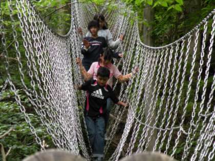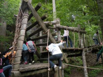 竹ばし作りの早く出来た班から冒険の森でアスレチックをしました。