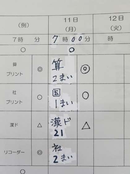 漢字ドリルは1日1ページ