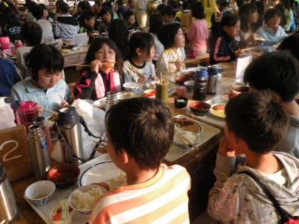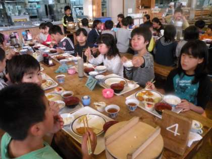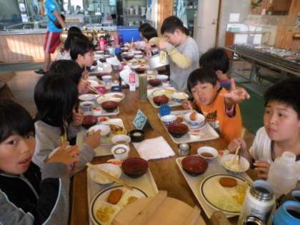 班ごとにいただきますをして食べはじめました。