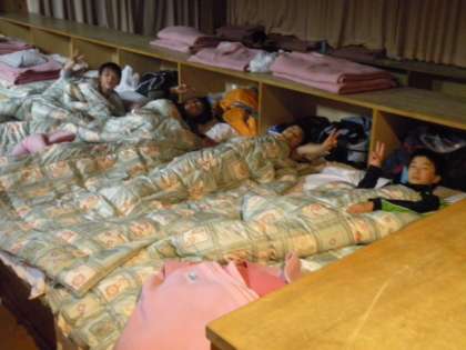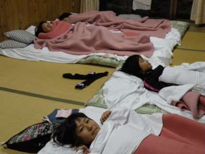 今日は疲れたのか、午後9時40分を過ぎた頃から布団に入って寝る準備をしている子が数多く見られました。