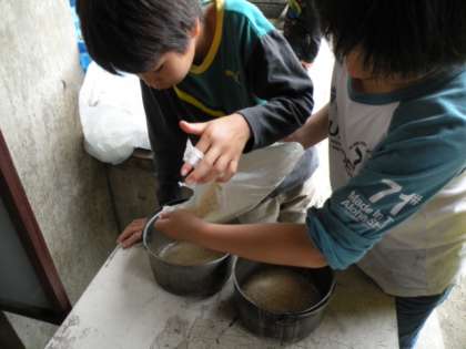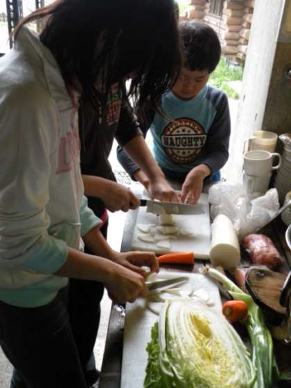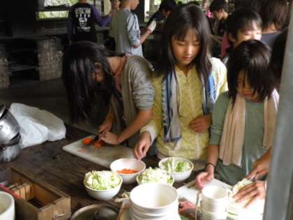 2回目の野外炊事だけあって手際よく準備が進んでいます。昼食のメニューは、豚汁とご飯です。