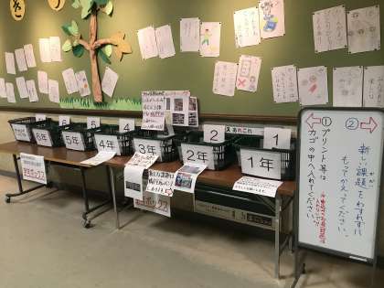 学年ポストに入れに来て下さった方には,新しい学習課題をお渡しします。忘れずにお持ち帰りください。