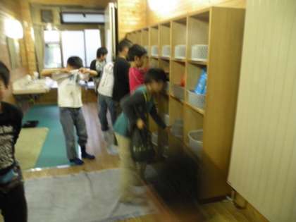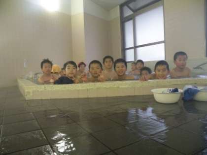 午後5時から入浴です。今日は女子が大浴場、男子が中・小浴場です。毎日男女交代になります。