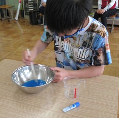 出来上がったスライムはお家に持ち帰っていますので,良かったらお家でも遊んでみてください。今日スライムを作れていない人もまた学校で時間を取りたいと思いますので,一緒に作りましょう。