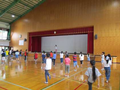課題の提出や新しい課題の配布,体育館で軽い運動をしました。