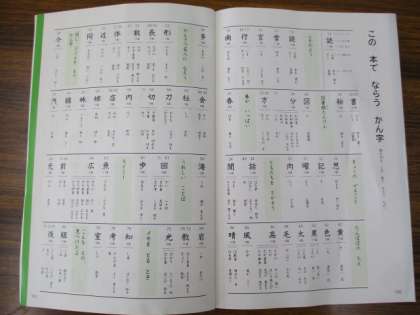 上のしゃしんは、上から「これまでにならったかん字」「この本でならうかん字」「この本でならうかん字 つづき」です。