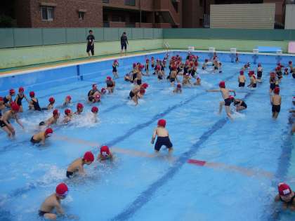 でも,子どもたちはワニ歩きや,碁石拾いなどを元気いっぱいにしていました。明日は,2年生が幼稚園の友だちと一緒にプールで交流をする予定です。