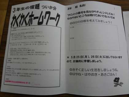 内容は社会や算数のかけ算,3枚の漢字ノートのコピー