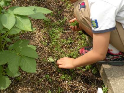 雑草をきれいに取ってくれているお友だちもいます。