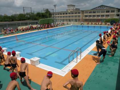 深草幼稚園とのプール交流(1)
