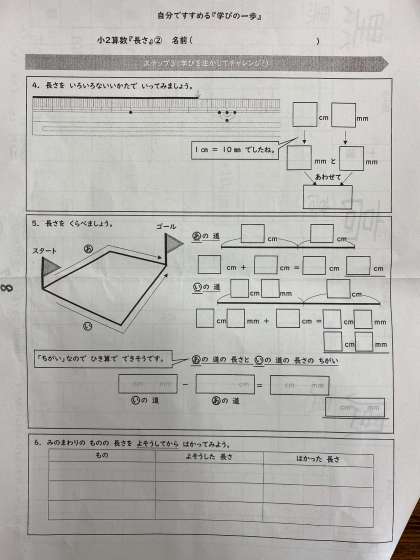 きょうと市とういつプリントの8ページ『長さ』2