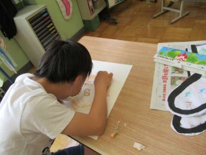 わかばの学級目標の横に貼る似顔絵を描きました。自分の顔,目,口,鼻,それぞれどんな形をしているのか,みんなで話し合いながら取り組みました。くりくりした目の人,鼻の穴まで細かく描いている人など,素敵な似顔絵がたくさん出来ました。