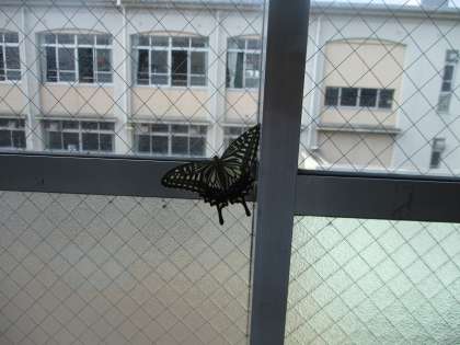 やったー!今朝教室に行くと,教室の中の虫かごの「さなぎ」が,な・な・なんと!!美しい「アゲハ蝶」に変身していました。子どもたちも大興奮!!しばらくは窓をしめきってアゲハ蝶の様子を見ていたのですが,空気の入れ替えで窓を開けた瞬間!!!アゲハ蝶は旅立っていきました。美しくそして元気よく3年生の子どもたちの前から,旅立っていったのでした。