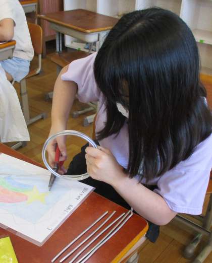 図工〜針金でステンドグラス風〜(6年生)