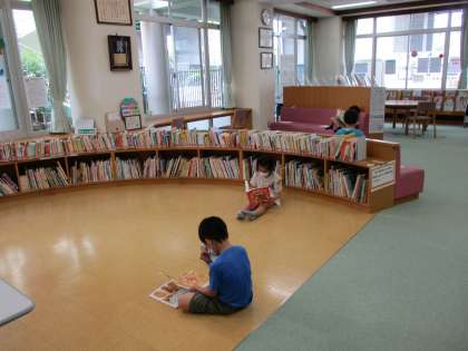 図書室でも密にならないようにはなれてすわって読書をしています。
