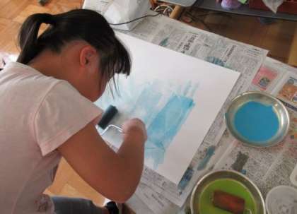 かたつむりの甲羅をマーブリングを使って表現しました。