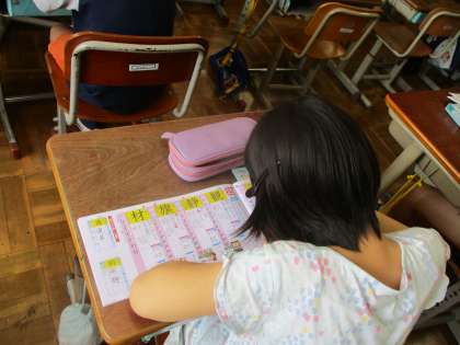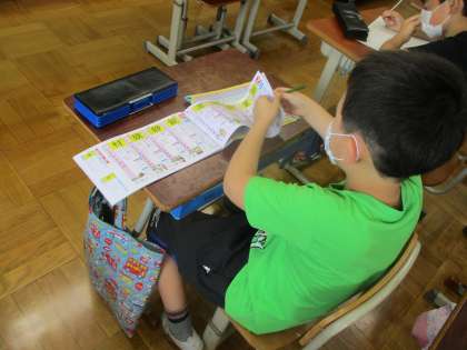 マスからはみ出ないように,形を意識して丁寧に書いていきます。