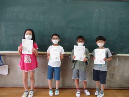 今年から全校での取り組みになりました「なわとびカード」ですが,4枚中1枚目をクリアすることができました。いいですね。1枚クリアするごとに賞状がもらえます。更に2枚目…3枚目・・・そして4枚目!!で最後になります。6年生までに何とか4枚クリアしたいですね。
