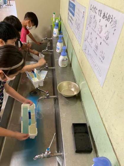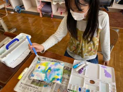 デカルコマニーとぼかし絵を楽しんだあとは,しっかりと片付けもできました。