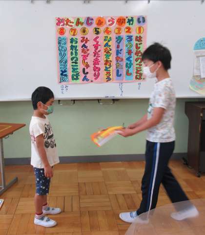 お誕生日の人に向けて,みんなで書いたお手紙を渡しました。