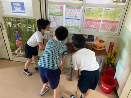 管理用務員室の前で飼育していることがわかると,そこでもしっかりと観察していました。