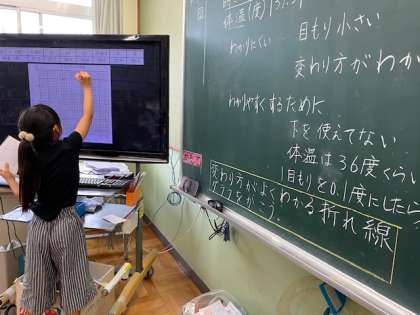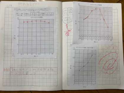 体温の変化を調べましたが,変化が小さく,しかも小数点まであってどこに点を打っていいかわかりません。
