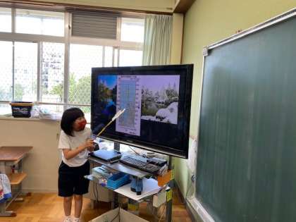 金沢の気温と降水量が示されたグラフから読み取る学習では,イメージをもってもらうために夏と冬の兼六園の画像を比べてもらいました。
