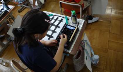 墨をすずりの上ですったり,