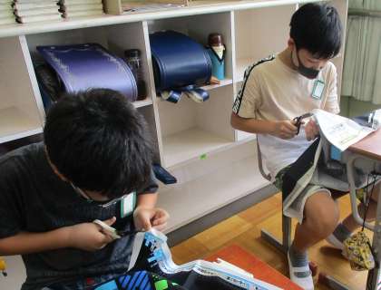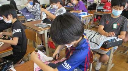 5年生で未履修だったミシンの学習を始めました。エプロンをミシンで仕上げます。エプロンの布にまち針をうつのがとても楽しそうでした。安全に気をつけてミシンを使っていきます。仕上がりが楽しみです。