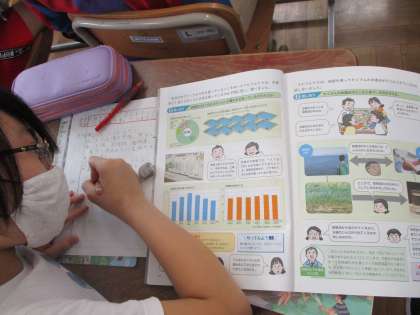 自分の予想を元に,教科書を使って自分で調べたことをノートにまとめました。