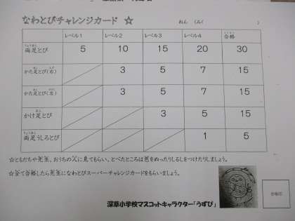 なわとびチャレンジカードにちょうせん!!(2年生)