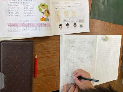 「立てて」⇒「かけて」⇒「ひいて」⇒「おろす」を呪文のように唱えて,問題が解けるようになってきました。