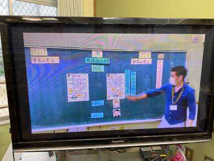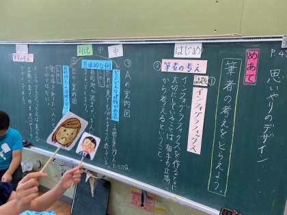 国語 思いやりのデザインでは,休校中に作成した動画も用いて学習しました。