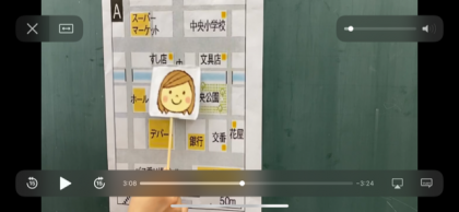 案内図のちがいをわかりやすく紹介する「いあんさん」と「しょうたさん」のペープサートは,子どもたちに大人気でした。