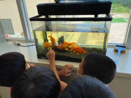 子どもちが水槽の前で楽しそうにしていたので,