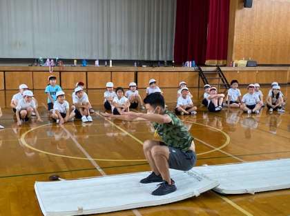 立ち幅跳びでは,藤井先生の見本を見て盛り上がりました。