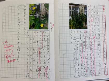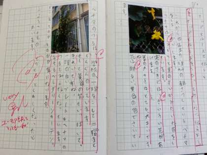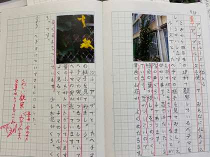 初めは,どのように書くのか戸惑っていた子もいましたが,アップとルーズの写真をもとにして書き出すと,おもしろくなってきたようで,振り返りには「楽しかった」と書いている子達がたくさんいました。