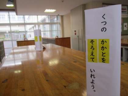 「くつのかかとを そろえて くつばこに いれよう。」