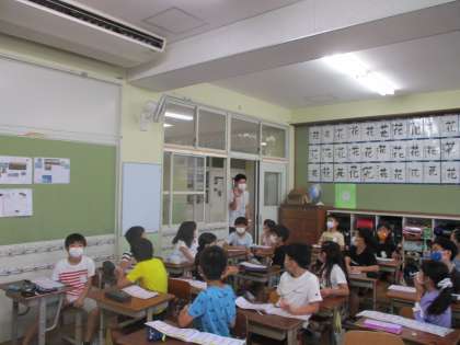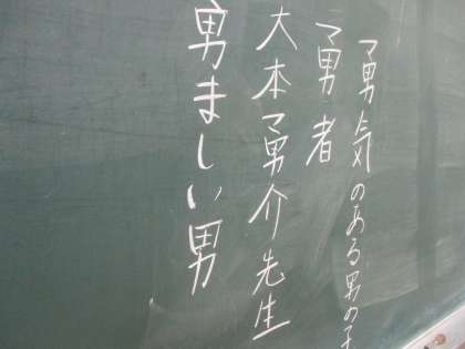 漢字の学習で「勇」の字を習いました。「勇」がつく言葉で大本先生の名前が出たその時,なんと名前に「勇」の字が入っている大本先生が登場しました!