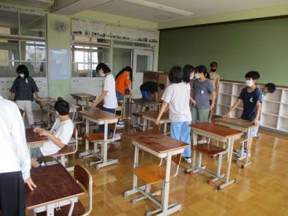 普段使っていない教室が町別で使われることを直前に気付いたので,
