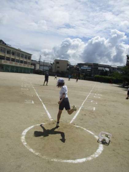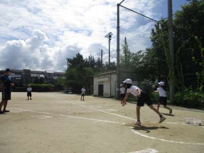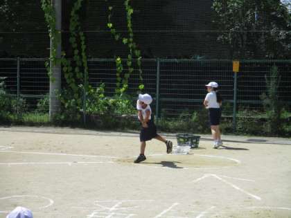 火曜日が雨で中止になったので今日実施しました。子どもにとってはソフトボールは大きいようでしたが,しっかり握ることを意識して投げました!
