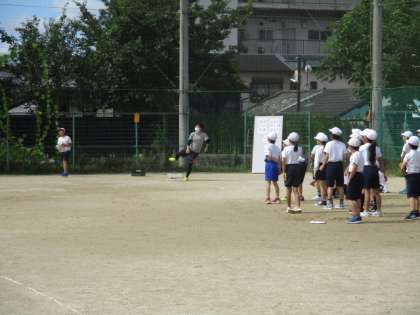 見本で投げた内田先生は75mでした。野球をずっと「続けた」ことが良い結果につながったそうです!