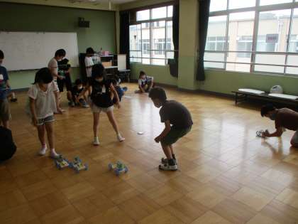 「電池の働き」最終回です。モーターカーのレース大会をしました。メンテナンス中です…。
