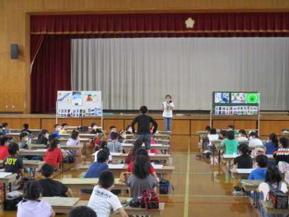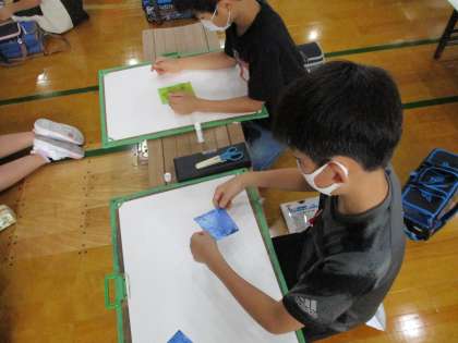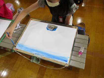 体育館で学年で図工を行いました。
