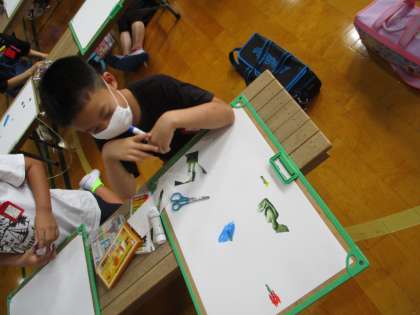 画用紙の向きも考えて自分のイメージを表現していきます。