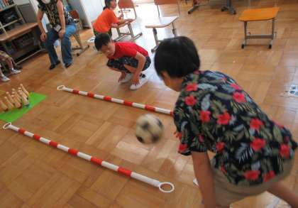 算数でボーリングの学習をしました。何度も繰り返ししていく内に,ボーリングのルールやボールの投げ方などに少しずつ慣れてきました。「もっと強く投げたらストライクが出るんじゃないかな」などと言いながら,自分なりに投げ方を考えてチャレンジしている人もいました。