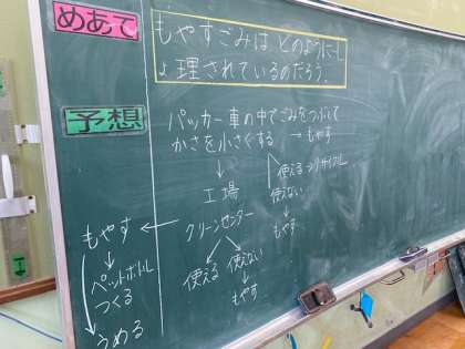 ここでリサイクルしていなかったので,次はもう一つのごみ(プラスチックごみやびん・缶・ペットボトル)についてい調べたいという意見も出ていました。