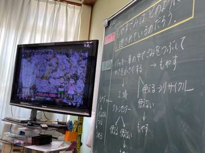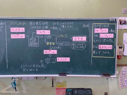 など,どうやら施設に持っていくのではないかと意見が出てきたところで動画資料を視聴しました。子どもたちは,燃やすごみを燃やす前にリサイクルをしていると考えているようでした。