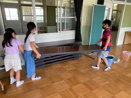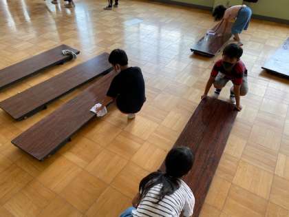 多目的室での活動が全クラス終わったので,掃除の時間に片付けをしました。