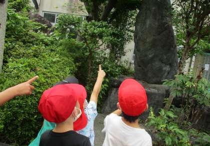 夏の自然の様子を運動場や玄関前に見に行きました。